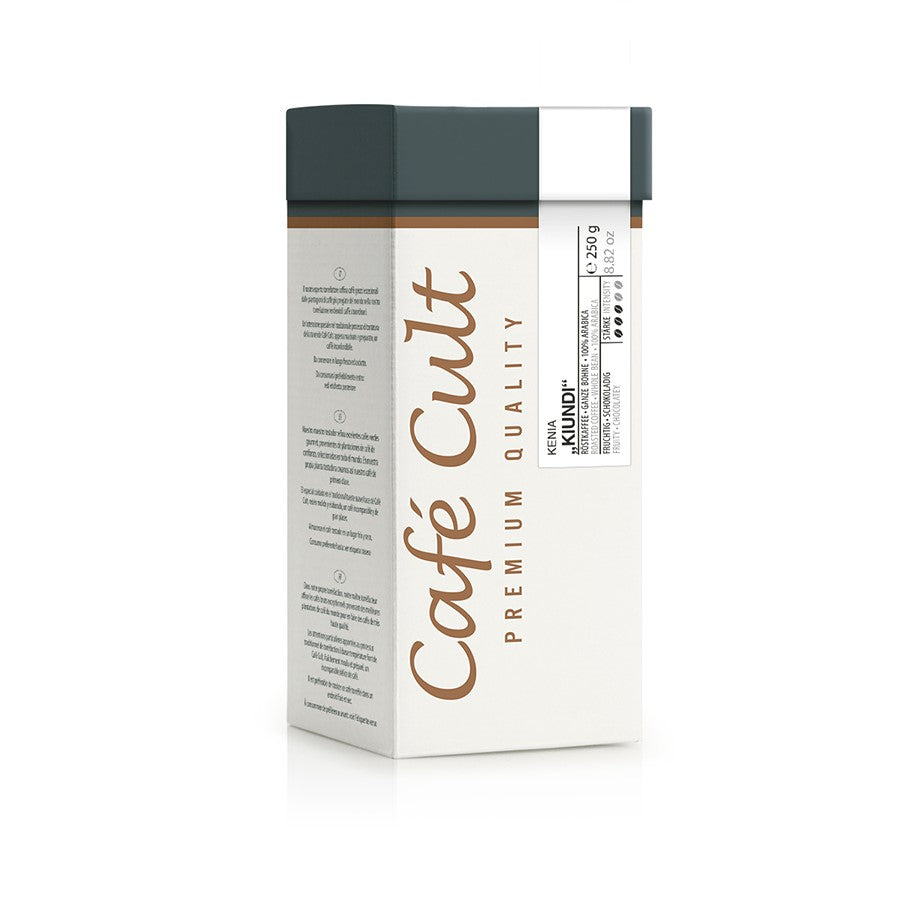 Das Anbaugebiet "Kiundi" liegt im südlichen Hochland. Auf den zwischen 1500 und 2100 Metern hoch gelegenen Anbaugebieten wird zweimal im Jahr geerntet. Da nur die reifen Kaffeekirschen geerntet werden, kommt es vor, dass die gesamte Anpflanzung bis zu siebenmal in Handarbeit abgeerntet wird. Kaffeegenießer haben eine besondere Vorliebe für die aromatischen kenianischen Spitzenkaffees, da diese sich durch feine Säure, die ungewöhnliche, an Beeren erinnernde Fruchtigkeit und einen vollen Körper auszeichnen. Die ersten Pflanzen gelangten im 19. Jahrhundert aus Äthiopien nach Kenia. Heute wird Kaffee auf 1300 Großplantagen sowie von 600.000 Kleinerzeugern in Kooperativen kultiviert.